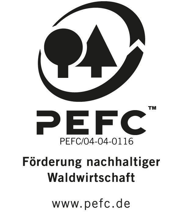Waldzertifizierung nach den Standards von PEFC basiert auf den sehr strengen Richtlinien für die nachhaltige Bewirtschaftung von Wäldern. Diese Bewirtschaftung wird durch kompetente und unabhängige Organisationen kontrolliert. Trägt ein Produkt aus Holz das PEFC-Siegel, dann heißt das: Die gesamte Produktherstellung - vom Rohstoff bis zum gebrauchsfertigen Endprodukt - ist zertifiziert und wird durch unabhängige Gutachter kontrolliert. Ihre Entscheidung für ein Produkt mit PEFC-Siegel ist damit ein Glück für den Wald!